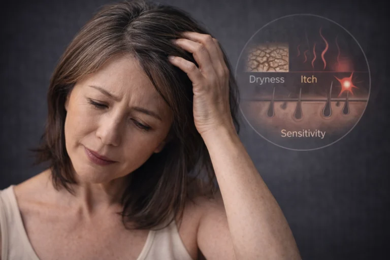Hair changes often begin quietly. Many women first notice their hair feels drier, less shiny, or harder to manage—even before any visible thinning. The scalp may feel tight or slightly itchy, and hair may take longer to grow or style…
