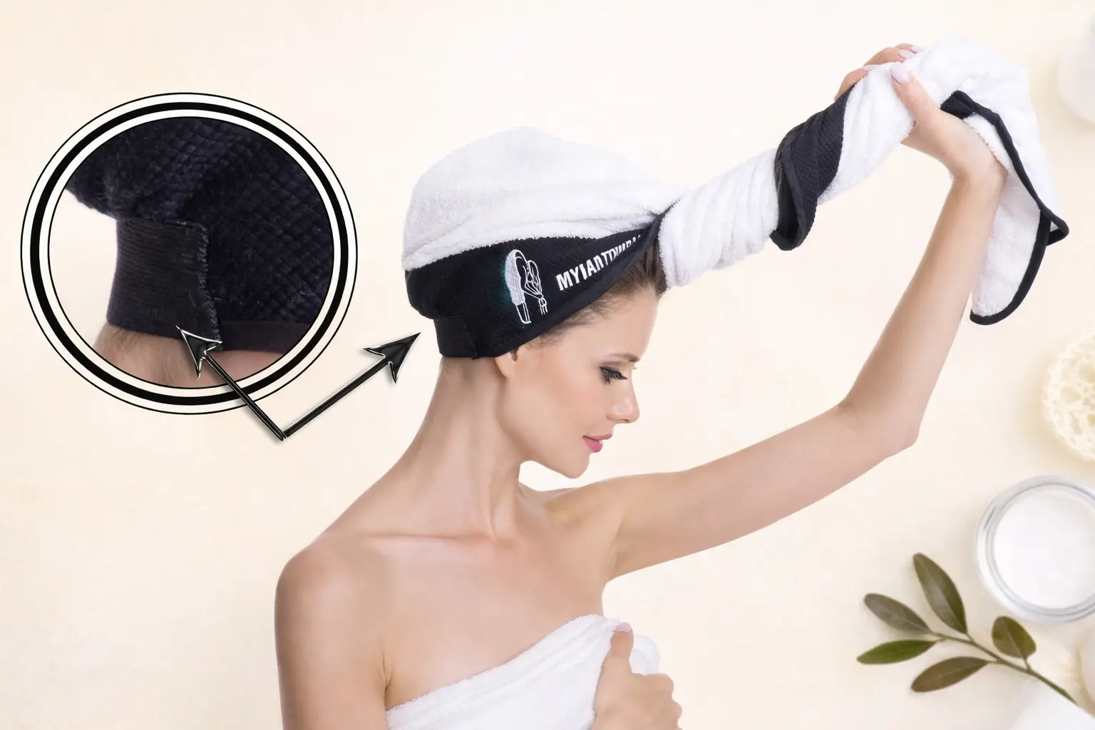 • Hair towel slipping off during skincare or getting dressed